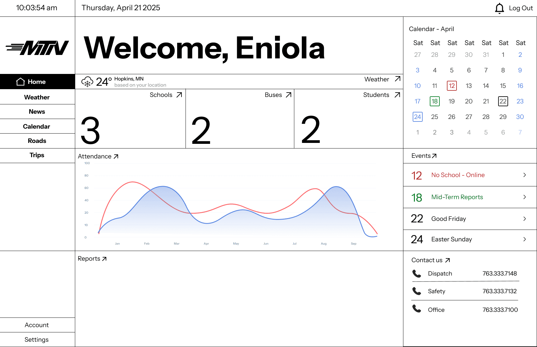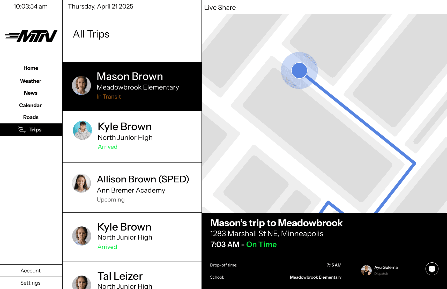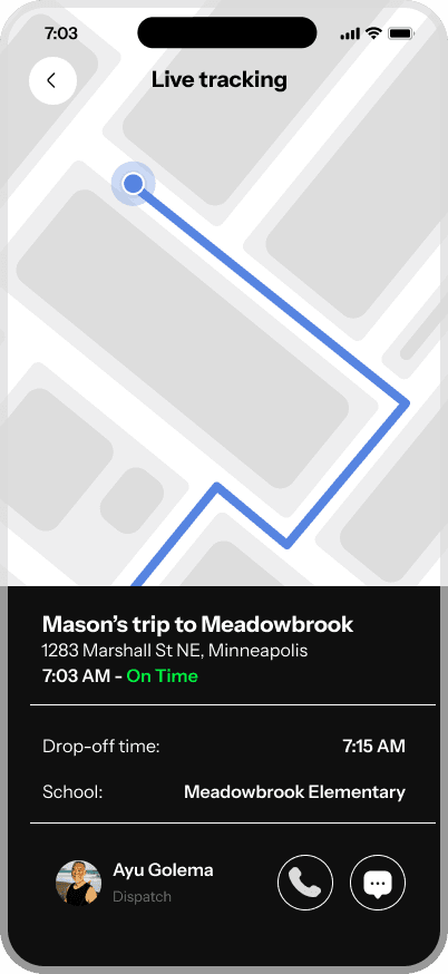 For parents, school transportation is more than logistics; it’s trust. Yet, many families at MTN had no way of knowing whether their child’s van was delayed, if the driver had changed, or how consistent the service was week to week. Conversations often happened through phone calls or paperwork after the fact, leaving parents stressed and disconnected from the daily realities of their child’s commute. For parents, school transportation is more than logistics; it’s about trust. However, many families at MTN had no way of knowing whether their child’s van was delayed, if the driver had changed, or how consistent the service was from week to week. Conversations often happened through phone calls or paperwork after the fact, leaving parents stressed and disconnected from their child’s daily commute.