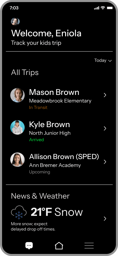 The experience of school transportation had become reactive. Parents would often wait at pickup spots uncertain if a van was running late, or they would receive paperwork days later with little context. The lack of visibility bred mistrust and made families feel disconnected from the service. For parents of younger children, in particular, the absence of real-time updates created unnecessary anxiety.
