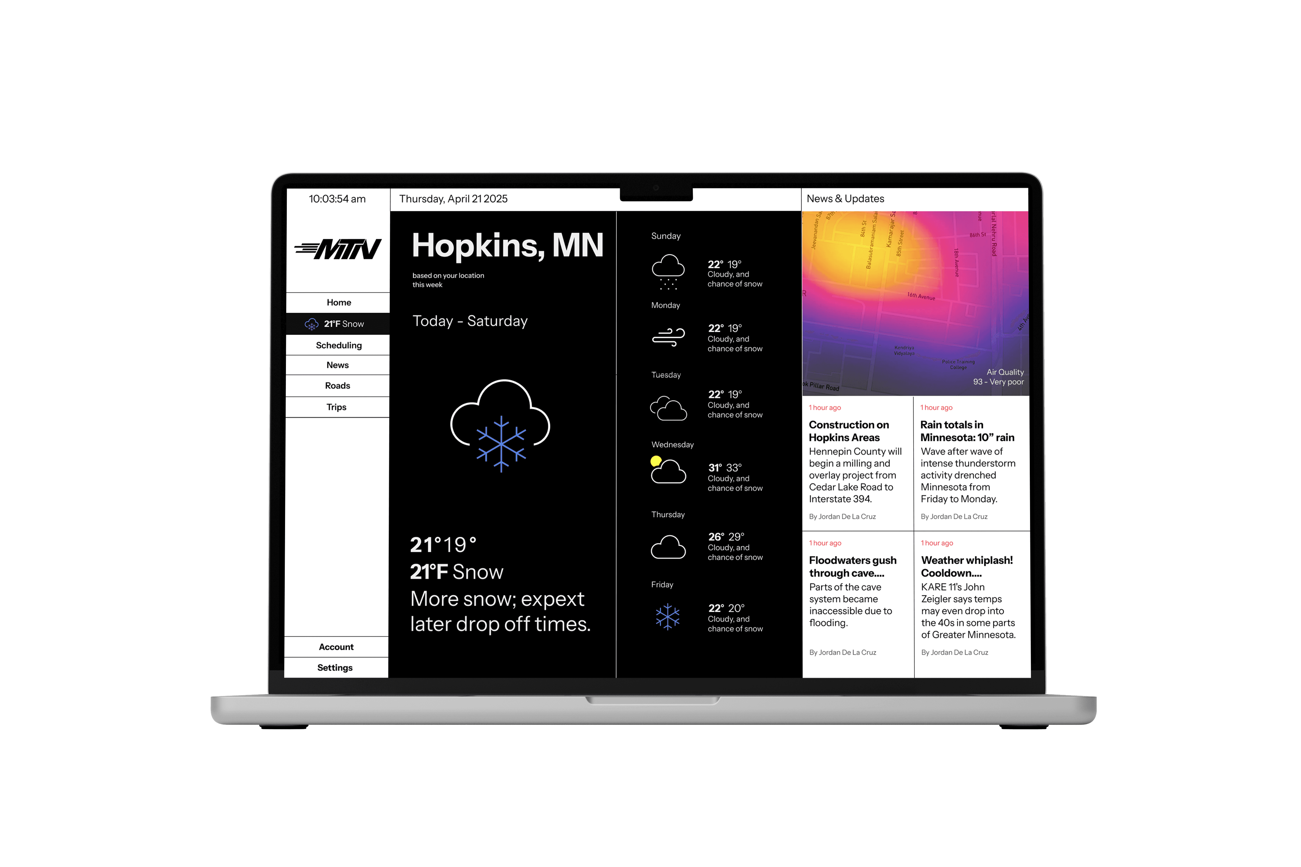 I SET OUT TO BUILD MTN LIVE AS A BRIDGE BETWEEN THE VAN, THE SCHOOL, AND THE FAMILY HOME. A BRAND ECOSYSTEM WHERE EVERY TOUCHPOINT COMMUNICATES ONE THING. YOUR CHILD IS SAFE. THE VISUAL SYSTEM TRANSLATES LIVE DATA INTO CALM, READABLE MOMENTS: REAL-TIME LOCATION, DRIVER IDENTITY, ATTENDANCE, AND PUNCTUALITY, SO THAT TRUST IS BUILT NOT THROUGH CUSTOMER SERVICE, BUT THROUGH DESIGN ITSELF.